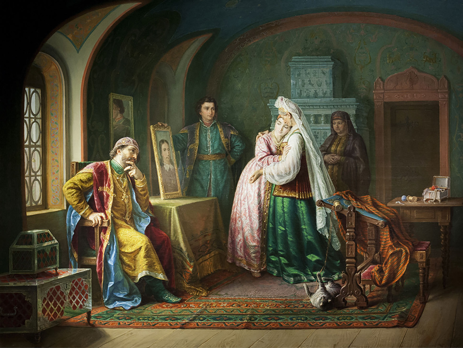 С. И. Грибков. Борис Годунов показывает своей дочери Ксении портрет жениха — принца датского герцога Иоанна. 1876 г.