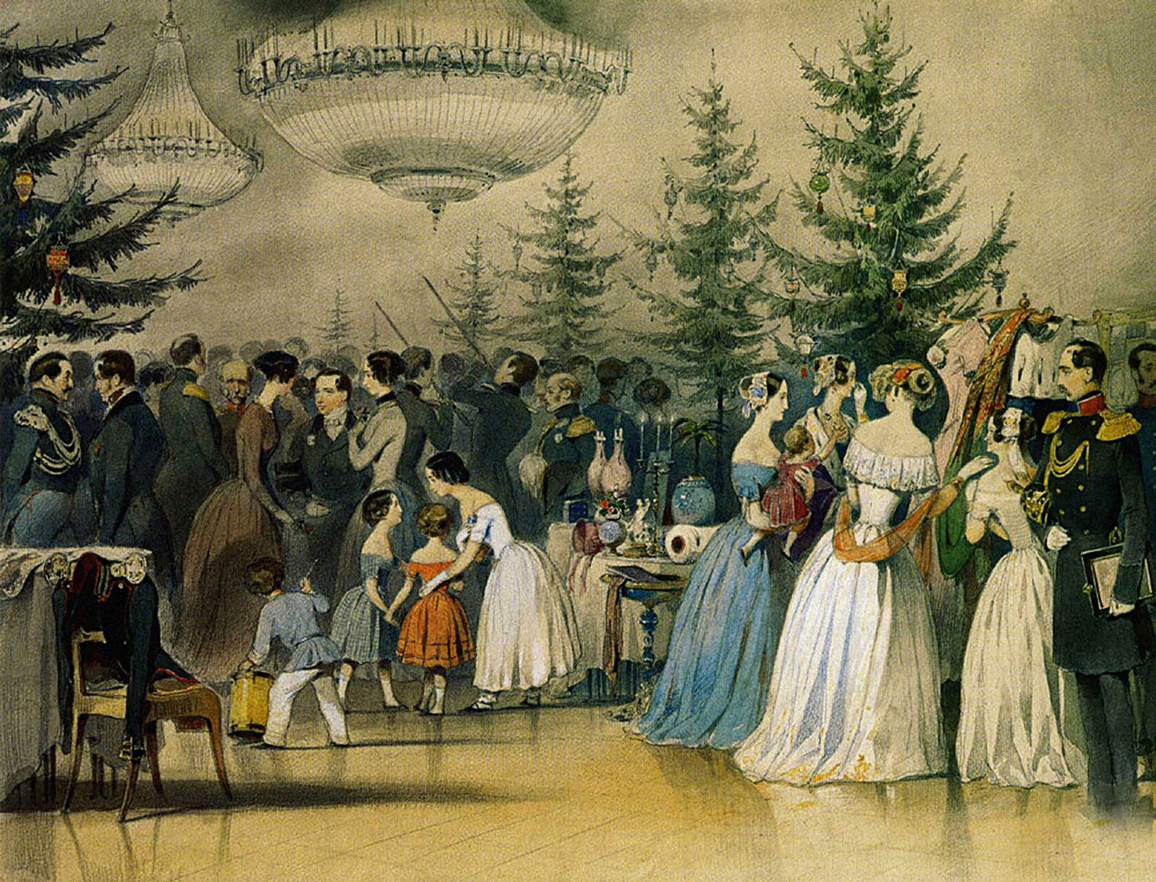 Установить точное время, когда елка впервые появилась в русском доме, пока не представляется возможным. Люди состоятельные, знатные, отмечали Новый год и Рождество с балами, карнавалами и фейерверками, но, если судить по описаниям святочных празднеств в журналах 1820-х–1830-х годов, рождественское дерево в большинстве русских домов еще не ставилось. Ни Пушкин, ни Лермонтов, ни их современники никогда о ней не упоминают, тогда как Святки, святочные маскарады и балы описываются в это время постоянно. Петербургские жители долго воспринимали елку как специфическое «немецкое нововведение».