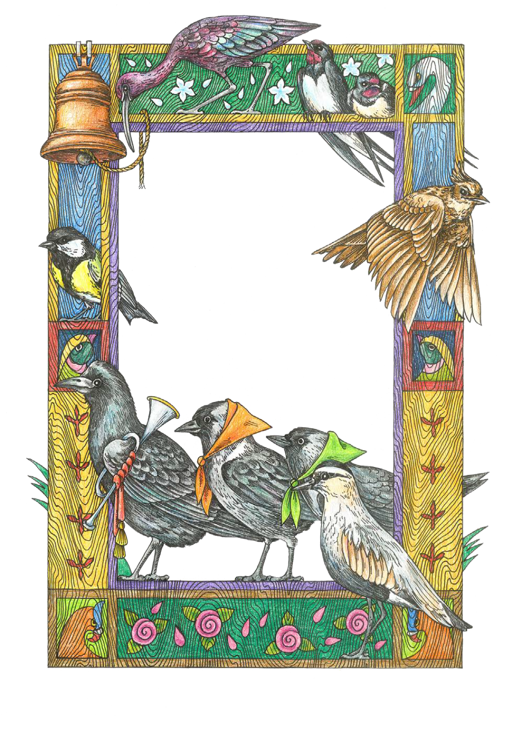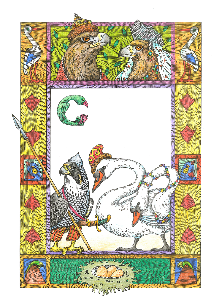 Грач трубач, Галицы старицы, Ласточки молодицы, Косатки девицы, Кречетка пономарь, Коровайка звонарь; Жаворонок вещевременикъ,