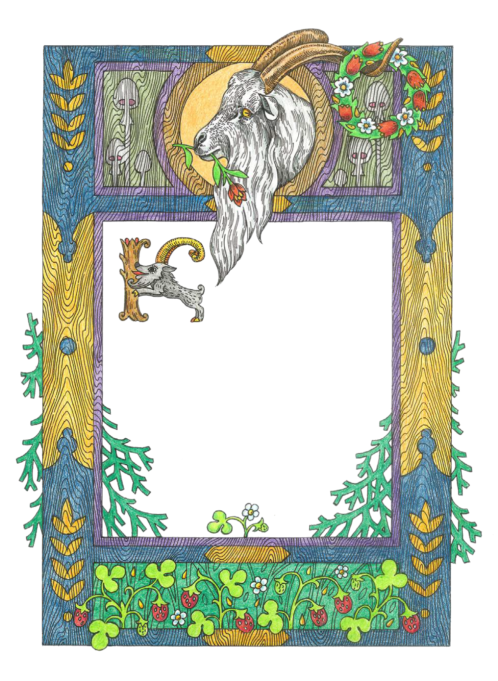 Как пошел наш козел Да по ельничку, По частому березничку, Что по горькому осинничку; Как навстречу козлу серый волченька: Ах ты, зверь, ты, зверина, Ты скажи-ка свое имя, Ты не смерть ли моя, Ты не съешь ли меня? Уж я смерть-то твоя, Уж я съем-то тебя!