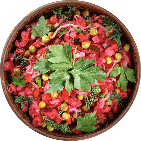 1. Это классический рецепт русской кухни, и помимо свеклы для него требуются отварные морковь и картофель, зеленый или репчатый лук, квашеная капуста или соленые огурцы и растительное масло в качестве заправки. Обычно салат овощной, но есть и грибные, рыбные, мясные разновидности.