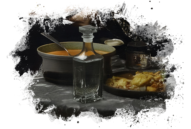 Перед тем как сесть за стол, гости под ходят к круглому столику, где расстав лены икра, филе селедки пряного посола, анчоусы, сыр, оливы, кружочки кол басы, гамбургская копченая говядина и другие закуски, которые едят на кусочках хлеба, чтобы разгорелся аппетит. «Ланчен» совершается стоя и сопровождается вермутом, мадерой, данцигской водкой, коньяком и тминной настойкой вроде анисовой водки, напоминающей «раки» Константинополя и греческих островов. Неосторожные или стеснительные путешественники не умеют противиться вежливым настояниям хозяев и принимаются пробовать все, что стоит на столе, за бывая, что это лишь пролог пьесы, и в результате сытыми садятся за настоящий обед. Во всех таких домах едят на французский манер, однако национальный вкус обнаруживается в некоторых характерных дополнениях. Так, вместе с белым хлебом подают ломтик черно го ржаного хлеба, который русские гости едят с видимым удовольствием. Они также находят очень вкусными соленые огурцы, которые сначала мне не показались приятными на вкус. Посреди обеда, после того как выпиты соки бордосских урожаев и шампанское «Вдова Клико», которое можно отведать только в России [Готье имеет в виду то, что шампанское «Вдова Клико» было столь дорогим, что отведать его можно было, только если кто-то угощал, а в богатых домах Рос сии угощали широко], пьют портер, эль и особенно квас – напиток вроде наше го пива, который делается из проброженных корок черного хлеба. К его вкусу нужно привыкнуть, и иностранцам он не покажется достойным великолепных богемских бокалов или серебряных чеканных чарок, в которых обычно пенится этот коричневый напиток.
